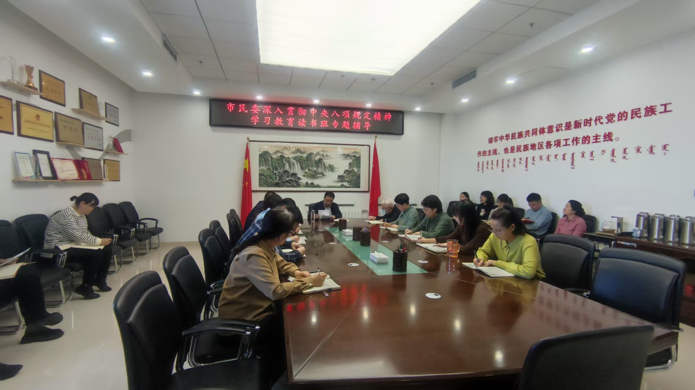 通过两天的学习,大家普遍接受了一次严肃的党性锻炼,进一步增强了贯彻中央八项规定精神的思想自觉、政治自觉、行动自觉,纷纷表示要持续学习贯彻习近平总书记关于深入贯彻中央八项规定精神学习教育的重要讲话和重要指示精神,一体推进学查改,融入日常、抓在经常,确保学有质量、查有力度、改有成效。要学习贯彻习近平总书记关于加强和改进民族工作的重要思想以及对内蒙古重要指示精神,以更高的标准、更严的要求,把中央八项规定精神融入职责中、落到行动上,以铸牢中华民族共同体意识为主线,为推动全市民族团结进步事业再上新台阶不断凝心聚力。
