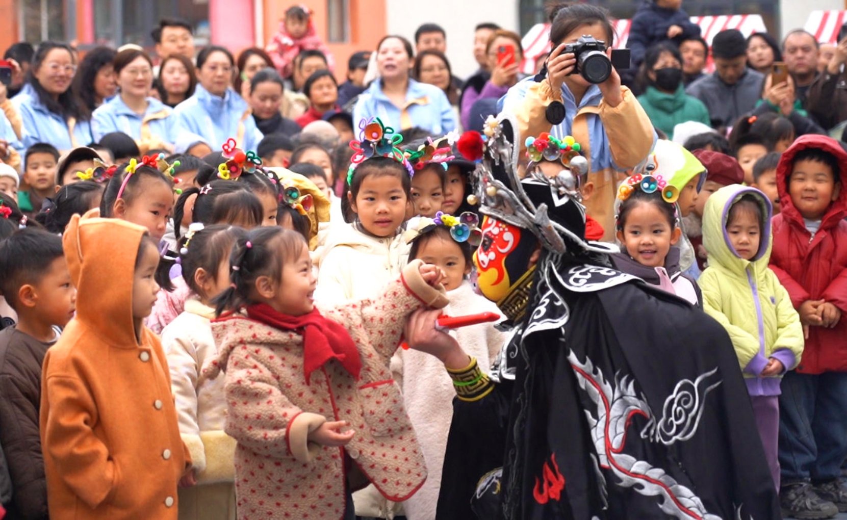 非遗展演区精彩纷呈,构建了沉浸式、互动式的文化教育场景。在展演区,舞龙、特色秧歌队伍欢腾跳跃,点燃现场氛围;传统戏曲、变脸、呼麦马头琴、非遗民歌等表演轮番上演,赢得现场阵阵掌声让孩子们近距离感受中华民族传统艺术的魅力。