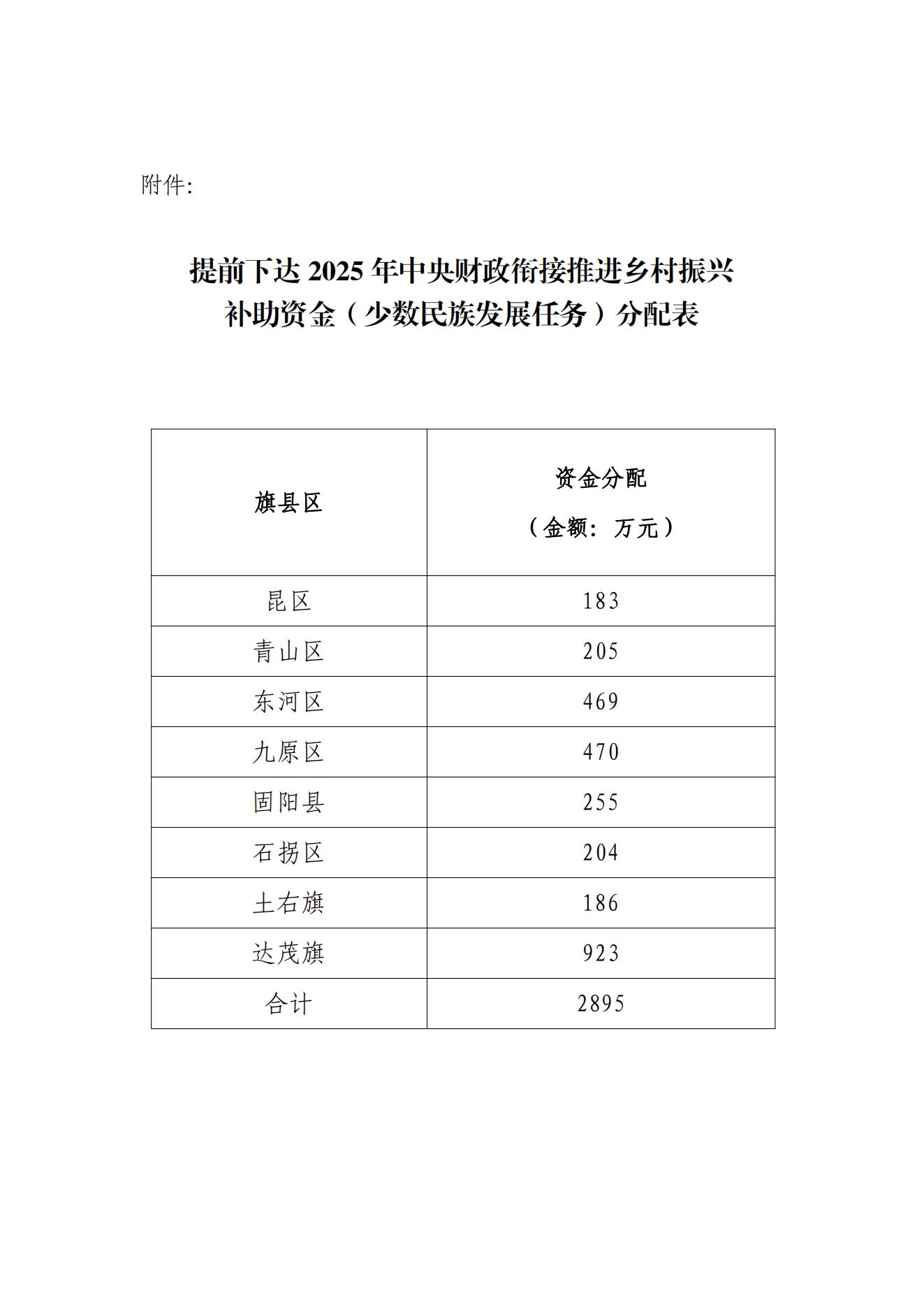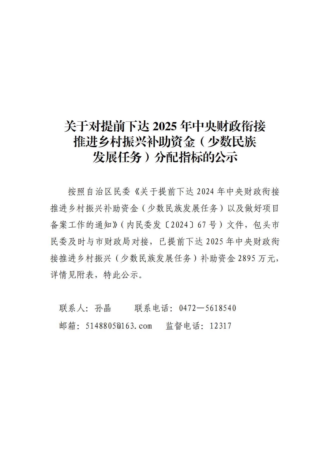 关于对提前下达2025年中央财政衔接推进乡村振兴补助资金(少数民族发展任务)分配指标的公示