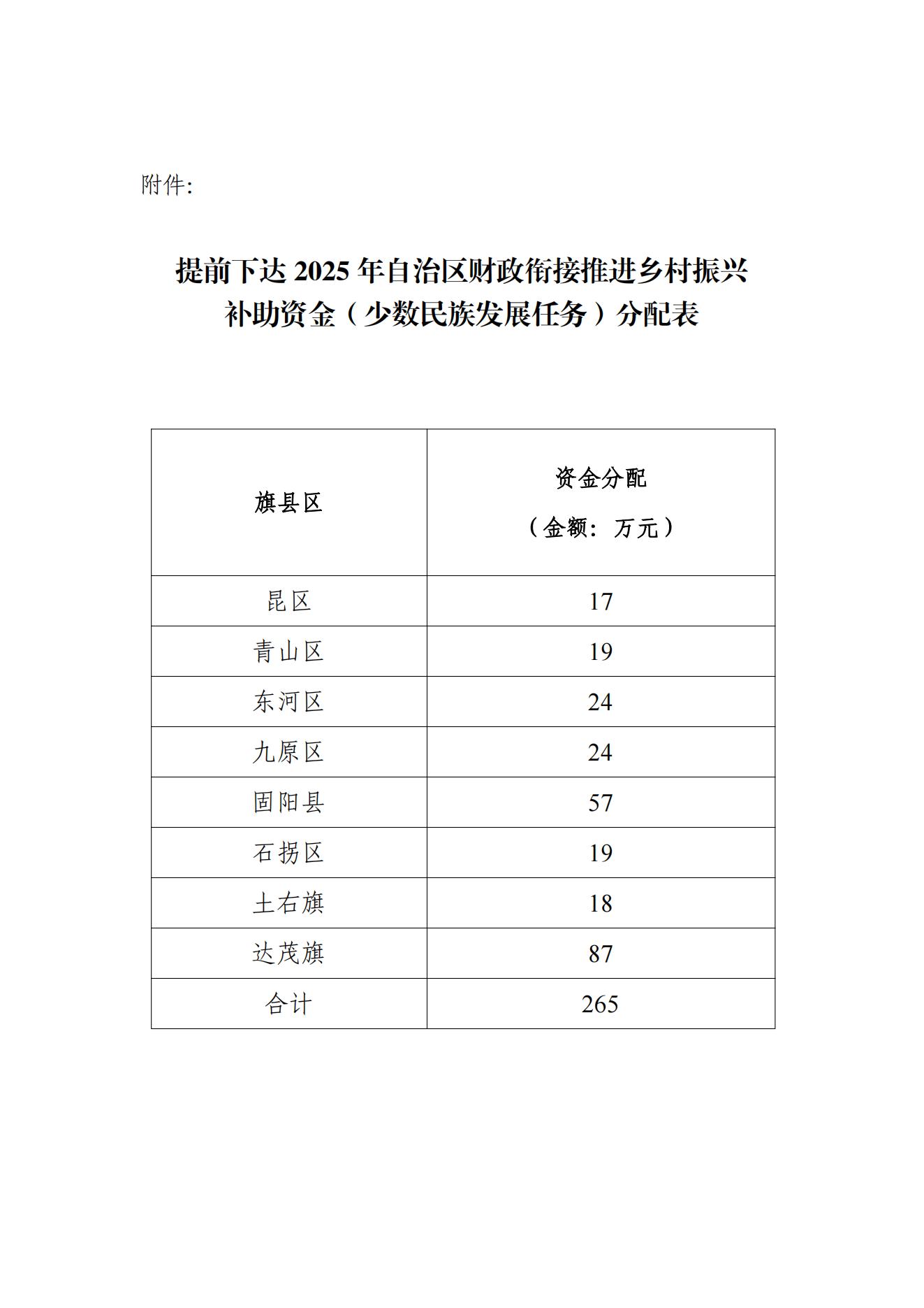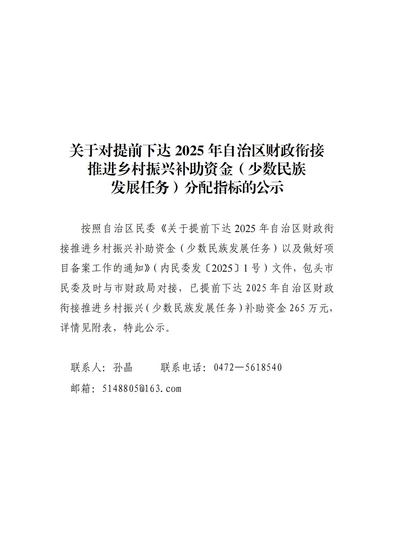 关于对提前下达2025年自治区财政衔接推进乡村振兴补助资金(少数民族 发展任务)分配指标的公示