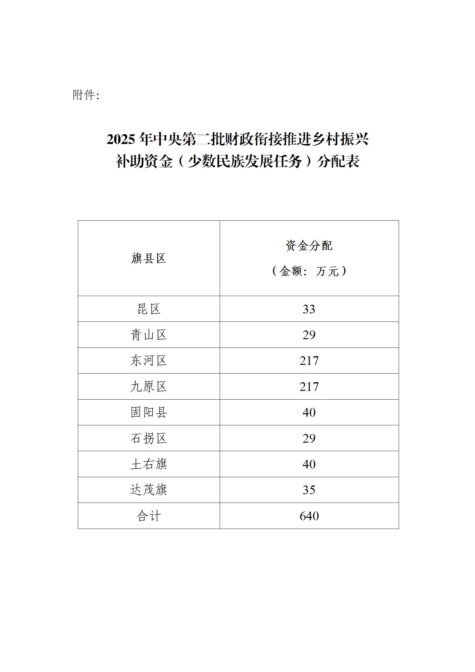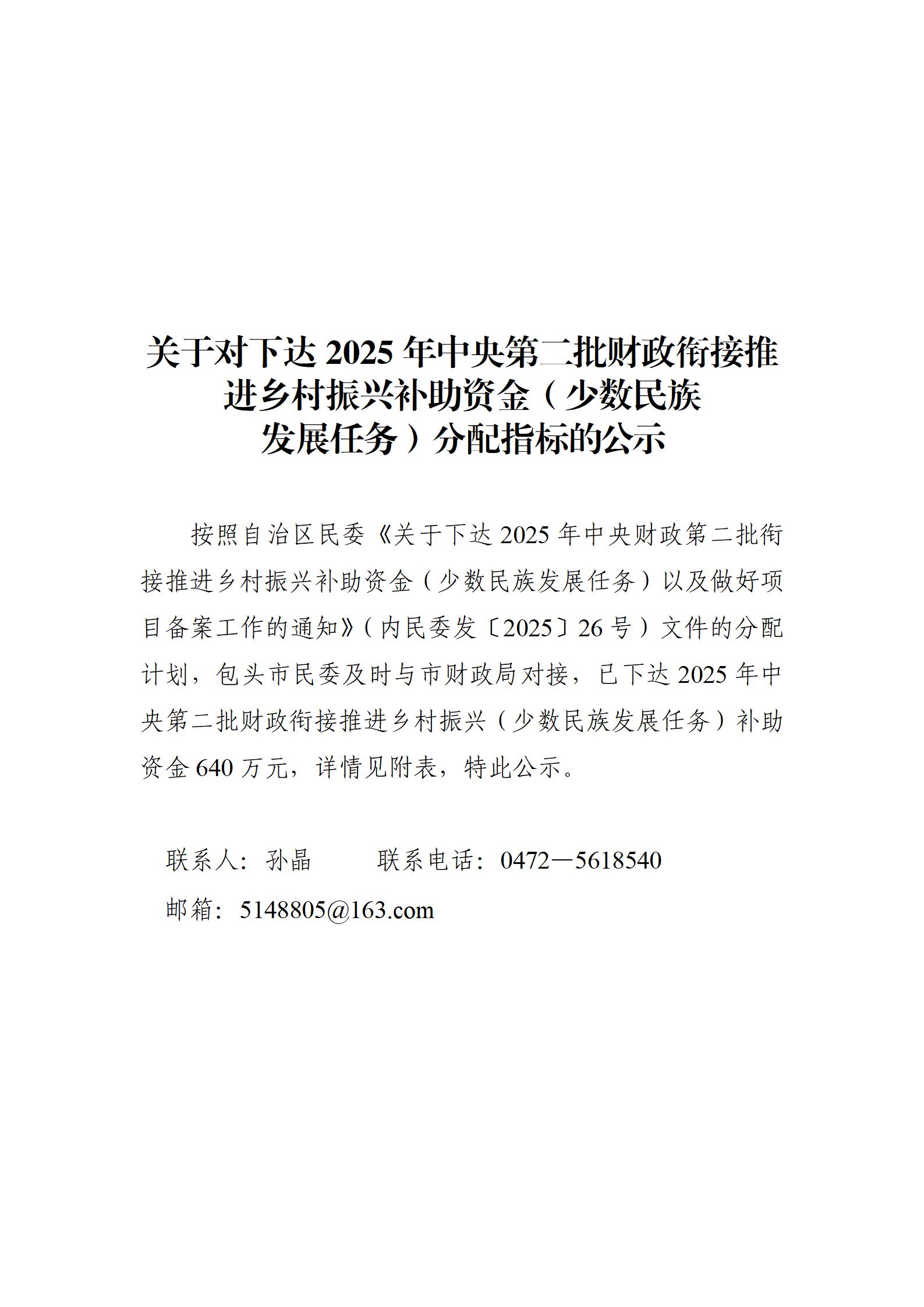 关于对下达2025年中央第二批财政衔接推进乡村振兴补助资金(少数民族发展任务)分配指标的公示