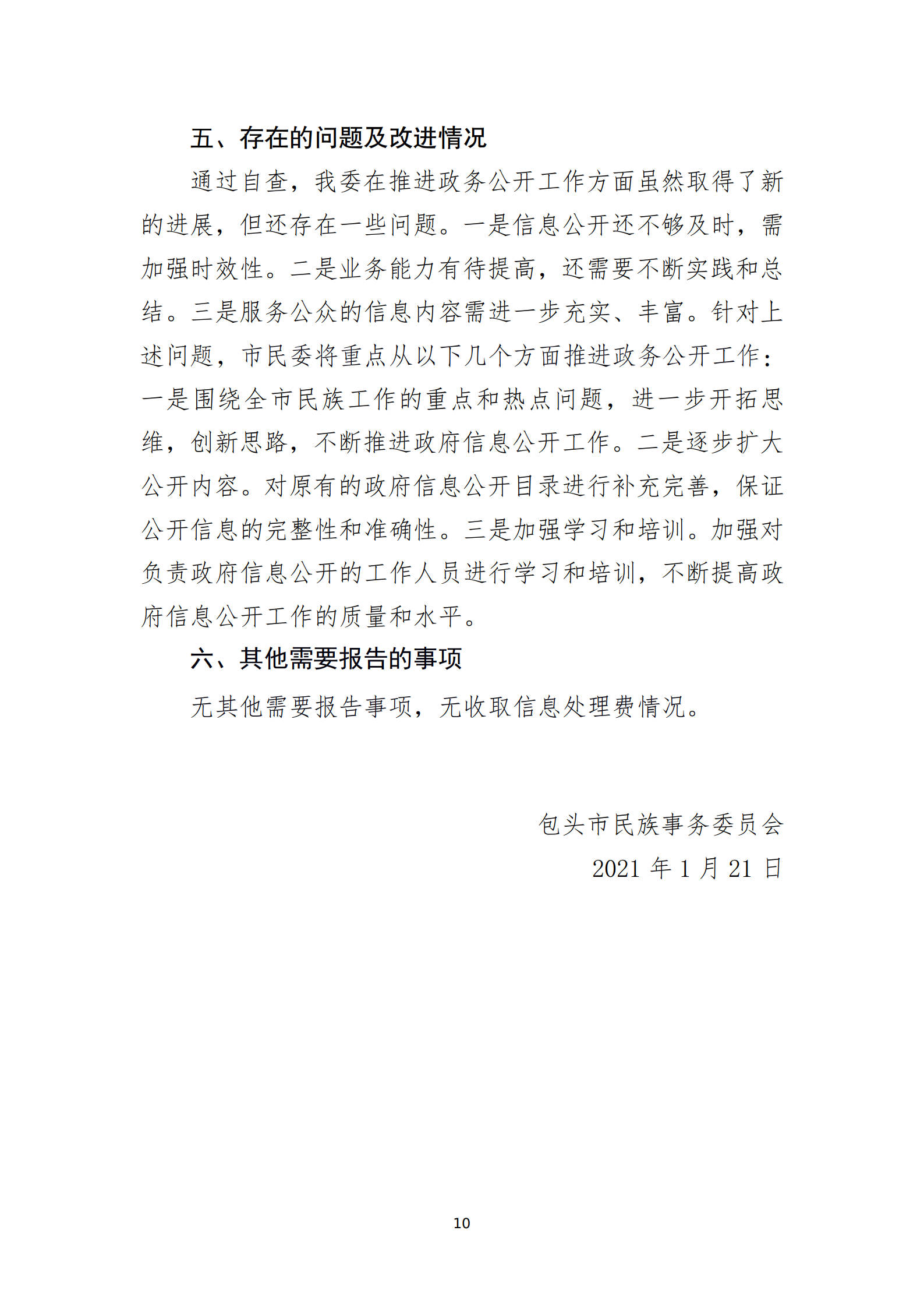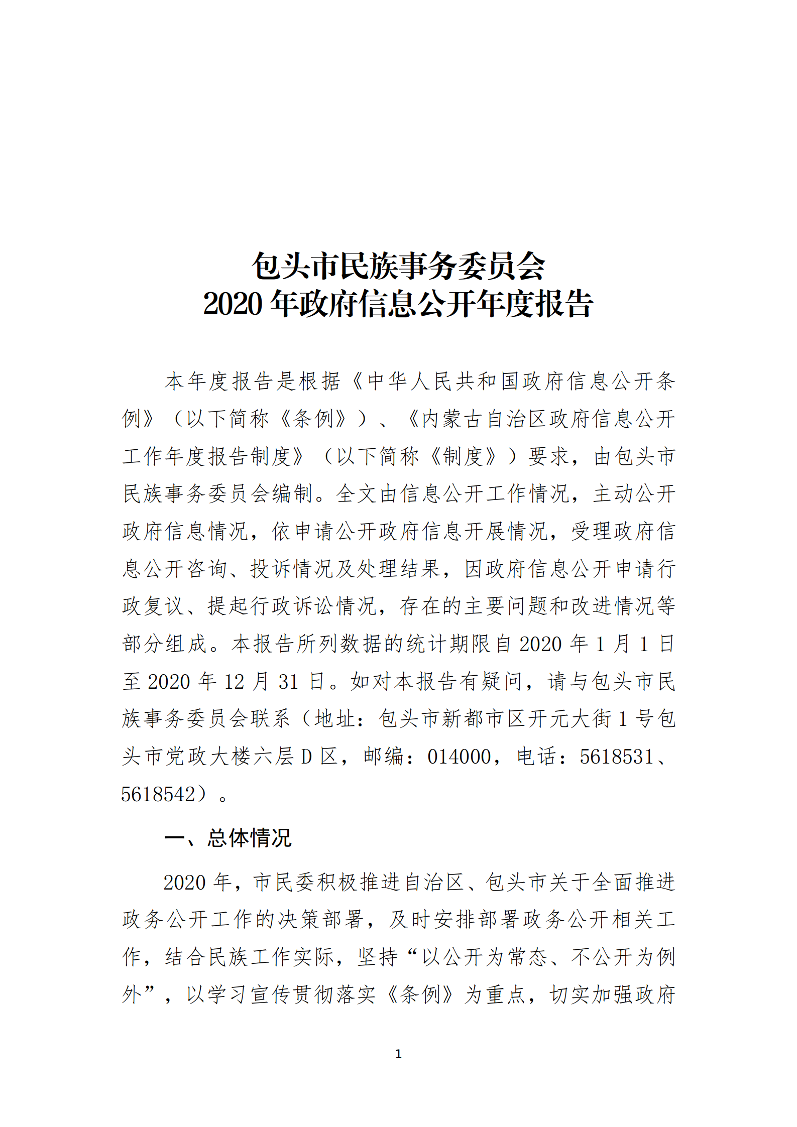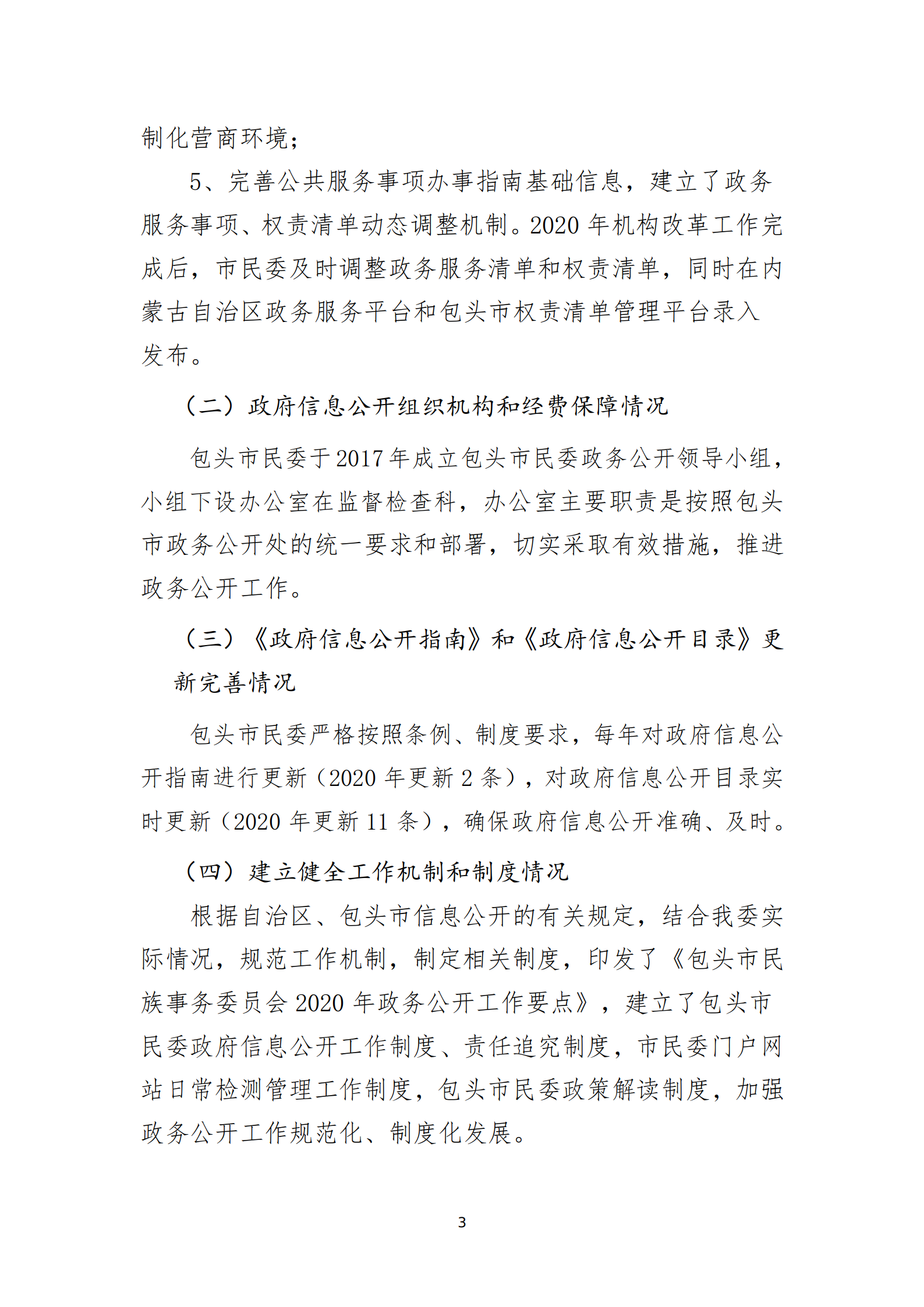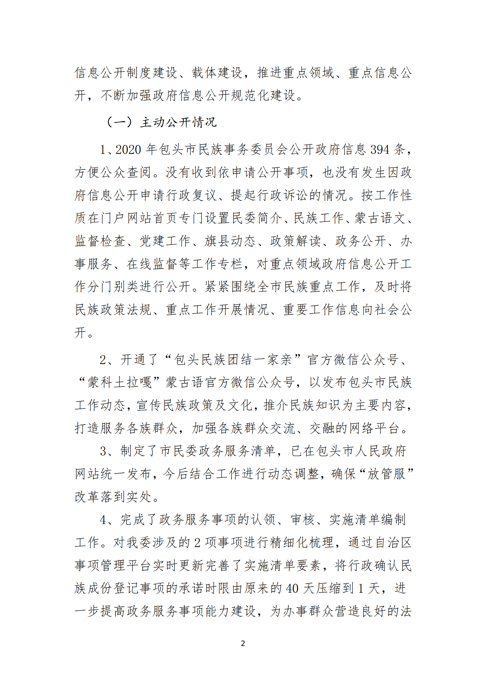 包头市民族事务委员会 2020年政府信息公开年度报告