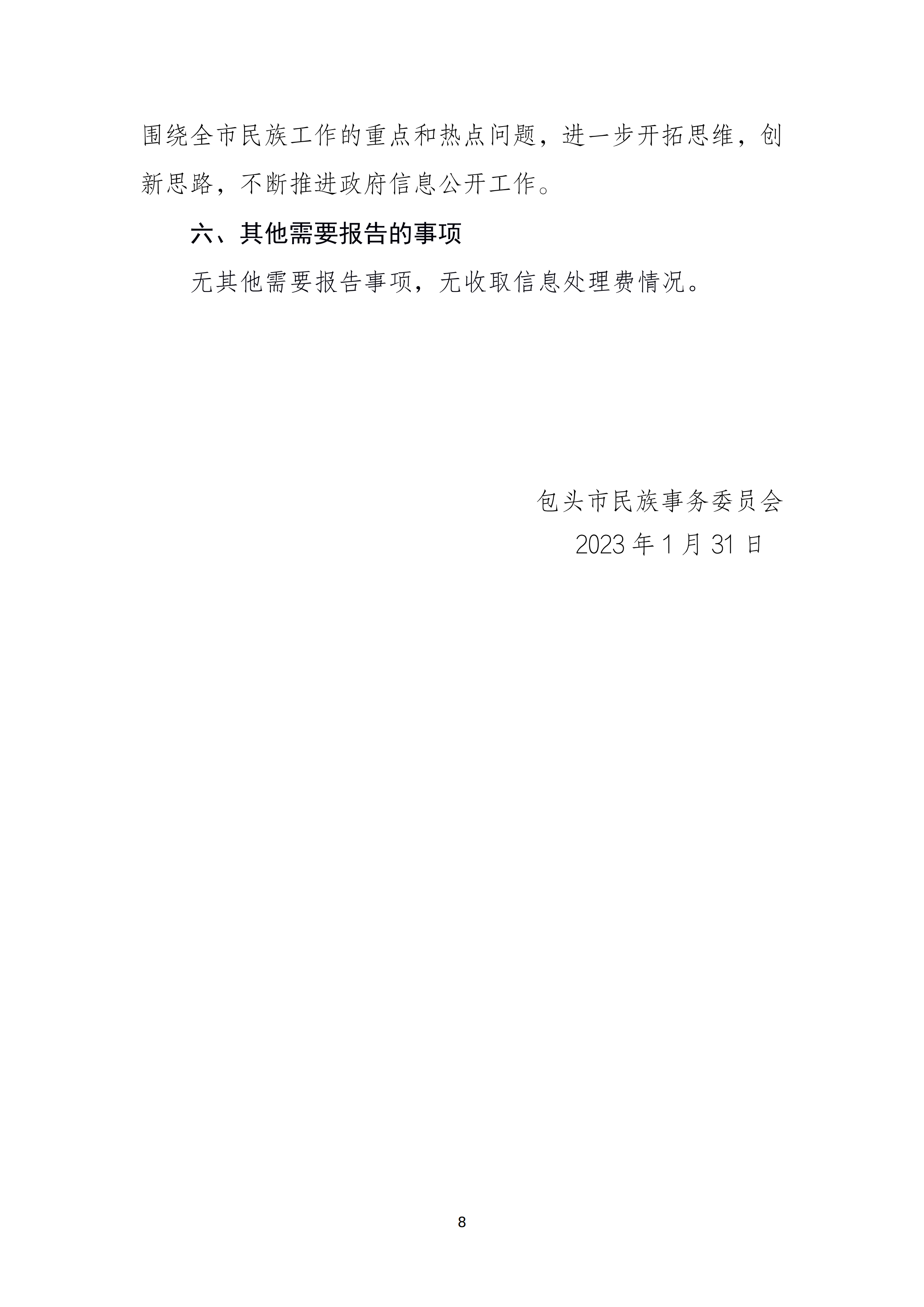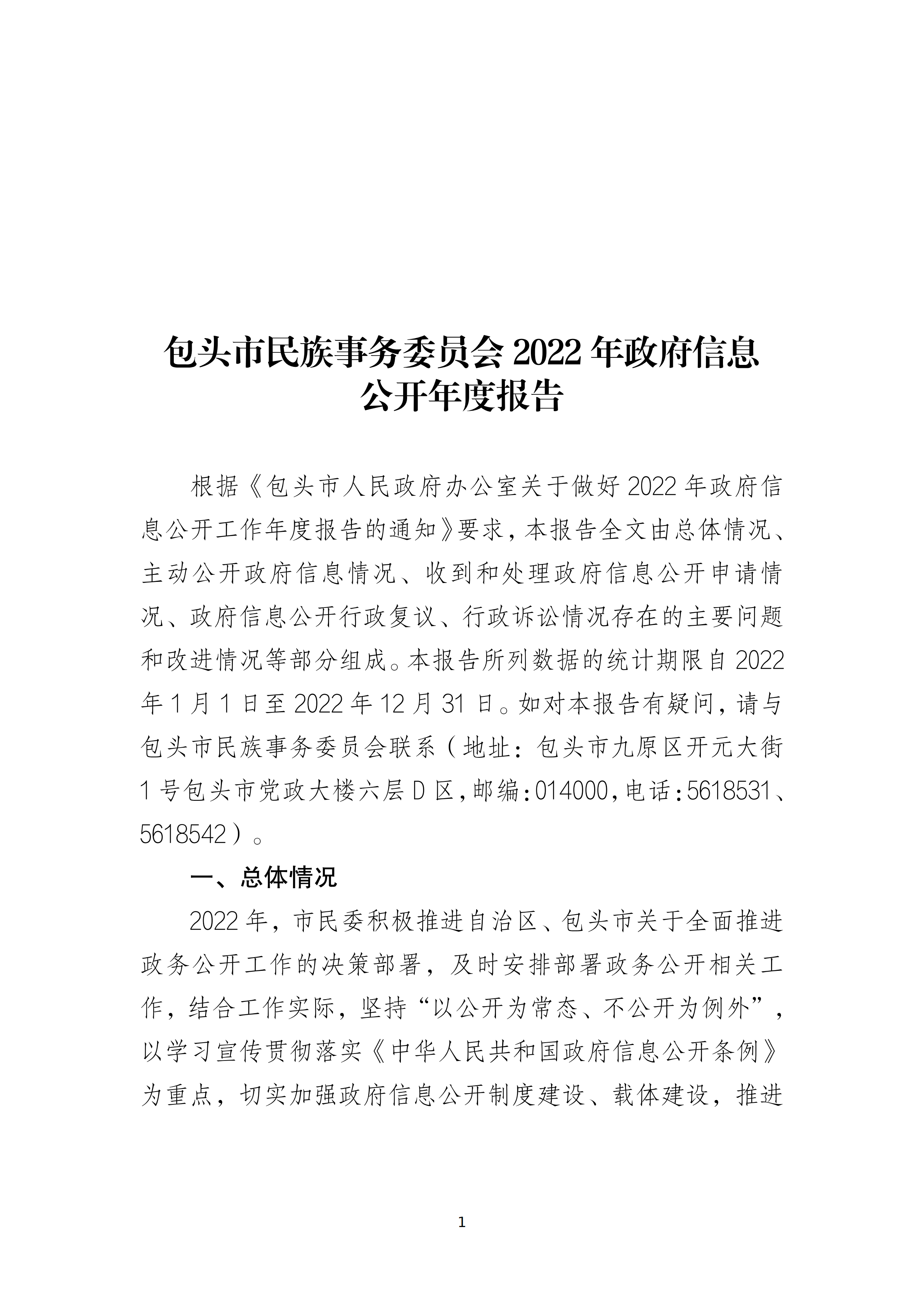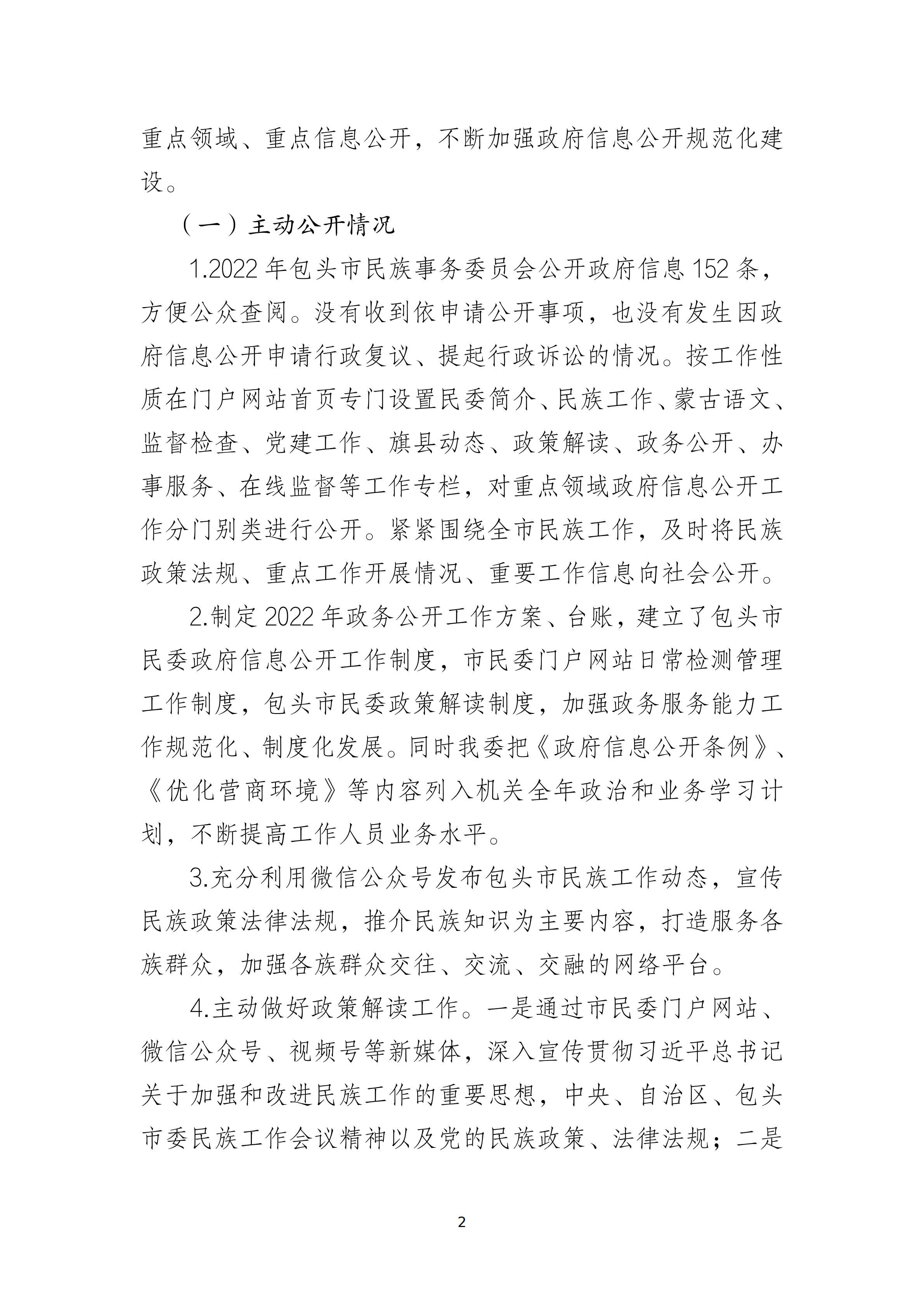 包头市民族事务委员会2022年政府信息公开年度报告